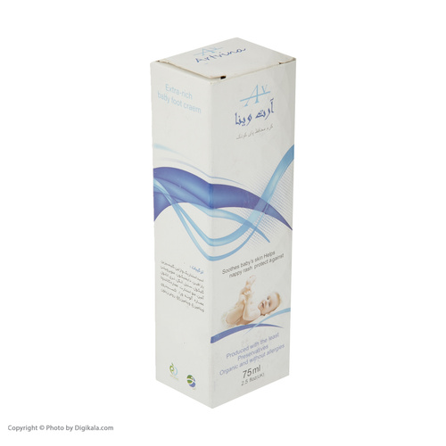 کرم پوشک نوزادان (محافظ پای کودک) پسرانه آرت وینا بر اساس استانداردهای سخت گیرانه به کار گرفته شده توسط شرکت تندیس طلایی کیان پارسه برای پوست بسیار حساس نوزاد طراحی شده است. اولین دغدغه در تولید این محصول بر مینای حذف مواد شیمیایی آسیب رسان به سلامت نوزادان بوده است. این محصول به عنوان یک کرم ویتامین بریر با دارا بودن زینک اکساید، کالاندولا، ویتامین B5 و ویتامین E، گلیسیرین، عصاره آلوئه ورا و روغن زیتون، طی 3 مکانیزم محافظت از پوست (PROTECTING)، بازسازی (RELIEVING) و نرم و لطیف کردن (SOFTENING)، همراه با ایجاد یک لایه محافظ ویتامینی بر روی پوست، سبب بازسازی و ترمیم لایه NMF پوست نوزاد، رفع قرمزی و التهاب و خشکی و خارش پوست و در نهایت بهعنوان پیشگیریکننده و ترمیم ادرار سوختگی بکار رفته و تسکیندهنده احساس سوزش و التهابات پوستی منطقه پوشک به کمک حفظ رطوبت پوست نوزاد، سبب جلوگیری از خارش و سوزش پوست و گریه نوزاد دلبند شما می گردد. این محصول با فرمولاسیونی پیشرفته، یک کرم هیپو آلرژن و ضد حساسیت محسوب میگردد و مناسب برای رده سنی زیر یکسال و بالای یکسال در دو سری پسرانه و دخترانه تولید شده است و فاقد مواد مضر شیمیائی پارابن، فتالات، مواد صابونی، الکل آزاد، لانولین، پلی اتیلن گلایکول و پروپیلن گلایکول می باشد.