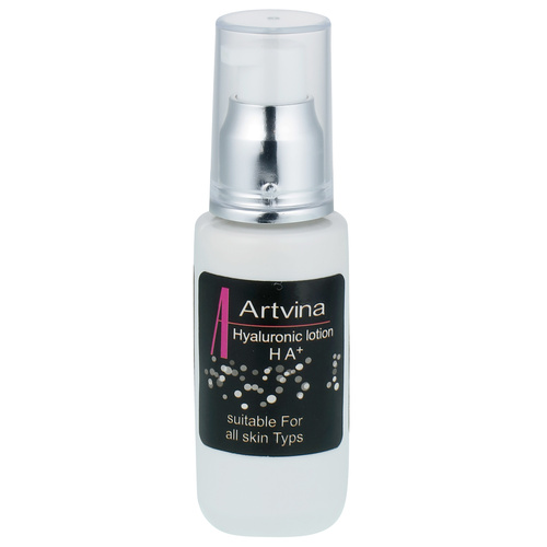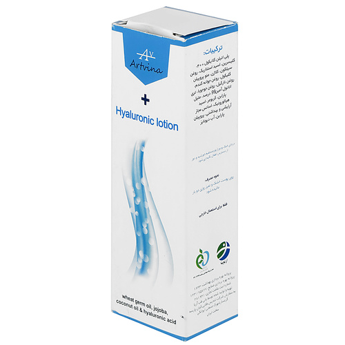 لوسیون هیالورونیک آرتوینا حاوی روغن جوانه گندم، روغن زیتون، روغن جوجوبا و هیالورونیکاسید است. هیالورونیکاسید یک ترکیب شیمیایی آلی و قویترین ماده جذبکننده رطوبت و مغذی برای پوست بوده و در بهبود زخم نیز مؤثر است. این ماده در آبرسانی و مرطوب نگهداشتن پوست نقش دارد و باعث کاهش عمق چروکها، جوانسازی، استحکام و افزایش کشش پوست میشود. تا به حال از خود پرسیدهاید چرا پوست کودکان آنقدر نرم و لطیف است؟ دلیل آن وجود مقدار فراوان هیالورونیکاسید در پوست آنهاست. هیالورونیکاسید برای پوست نقش بسیار مهمی در زیبایی و جوانی دارد. جالب است بدانید این ماده یک ترکیب مغذی هوشمند به شمار میآید؛ بدین معنا که میتواند با توجه به شرایطی مانند رطوبت هوا، میزان رطوبت جذبشده را تنظیم کند. برای مثال، در شرایط آبوهوایی مرطوب که پوست به آبرسانی کمتری نیاز دارد، تنها مقدار متناسب رطوبت موردنیاز پوست را جذب میکند. این لوسیون میتواند زیر محصولات آرایشی نیز استفاده شود؛ به شرطی که حدود 10 دقیقه پیش از آرایش روی پوست زده شود تا کاملاً جذب شود، سپس از محصولات آرایشی استفاده کنید.