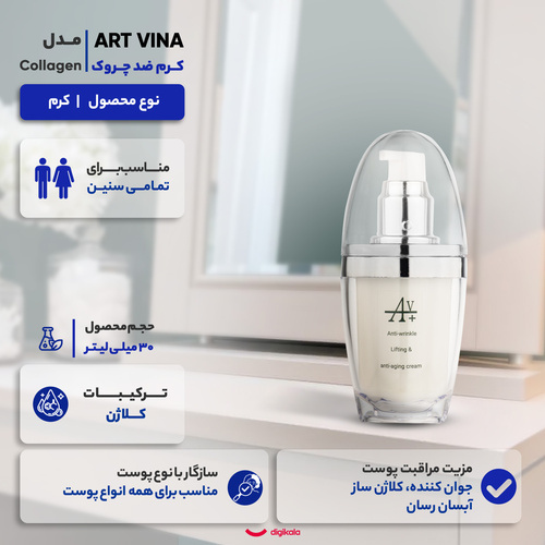 کرم ضد چروک آرت وینا مدل Collagen مناسب برای انواع پوست حجم 30 میلیلیتر