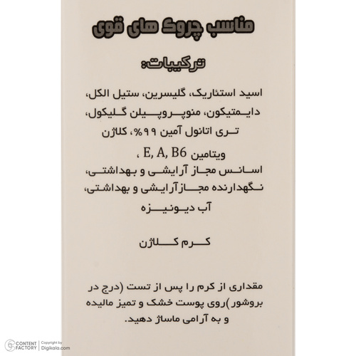 فرمولاسیون کرم به گونهای تنظیم شده که به عمق پوست نفوذ کند و تغذیه لازم را ارائه دهد. وجود ویتامین E به آرامبخش بودن و کاهش قرمزی و حساسیتهای محیطی کمک میکند و کلاژن با حفظ ساختار پوست، ظاهر یکنواختتر و نرمتری را به ارمغان میآورد. نتیجه ترکیب این دو ماده، پوستی با بافت صافتر، خطوط کمتر و سطحی نرمتر است که به مرور زمان روشنتر به نظر میرسد.